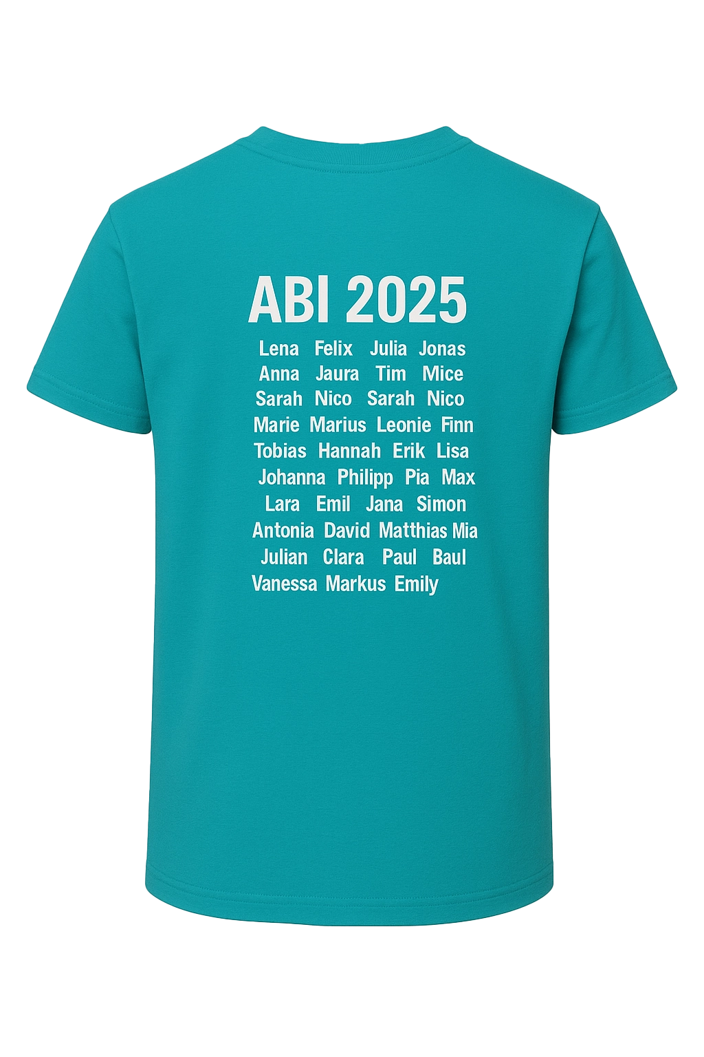 Im Preis enthalten ist der Druck vorne mehrfarbig ca. 20x30 cm und hinten die Namen in einfarbig ca. 20x30 cm.